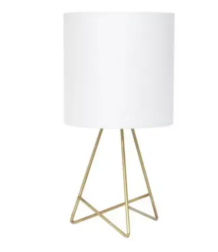 Bring function and fashion to any tabletop in your home with this modern table lamp. The gold metal base showcases an open silhouette complimented by a white fabric drum shade. Perfect size for any room in your home ! Illuminate your living room, bedroom, kids and teen rooms, college dorm, apartment, nursery, or offices with this modern table lamp with contemporary flair!