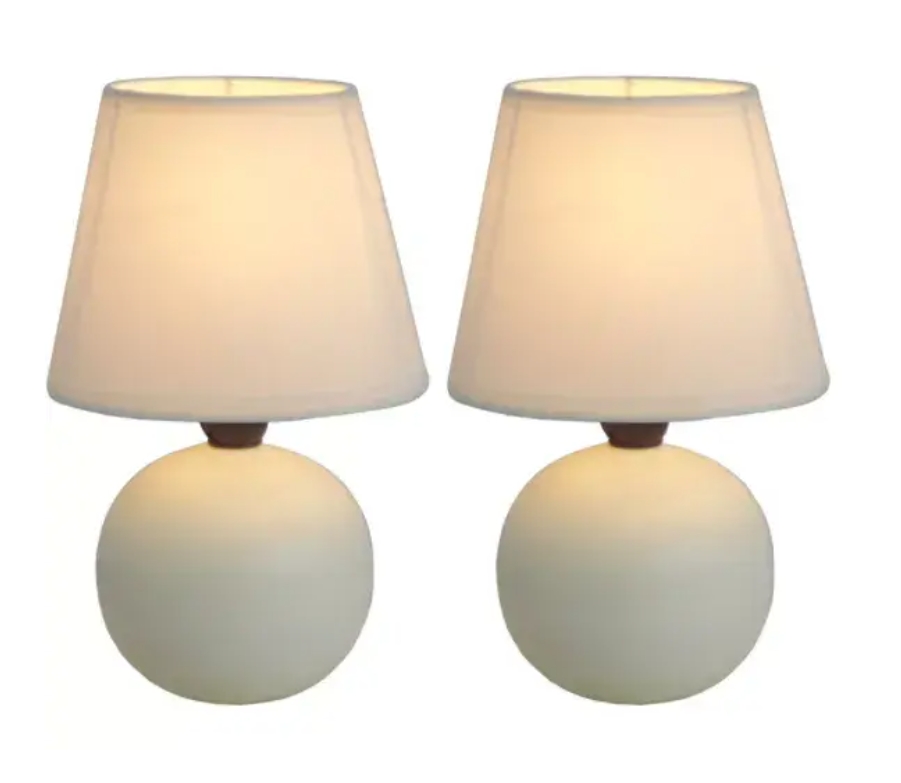 A lovely, inexpensive, and practical table lamp set to meet your basic fashion lighting needs. These mini globe lamps feature a ceramic base and matching fabric shade. Perfect for living room, bedroom, office, kids room, or college dorm!