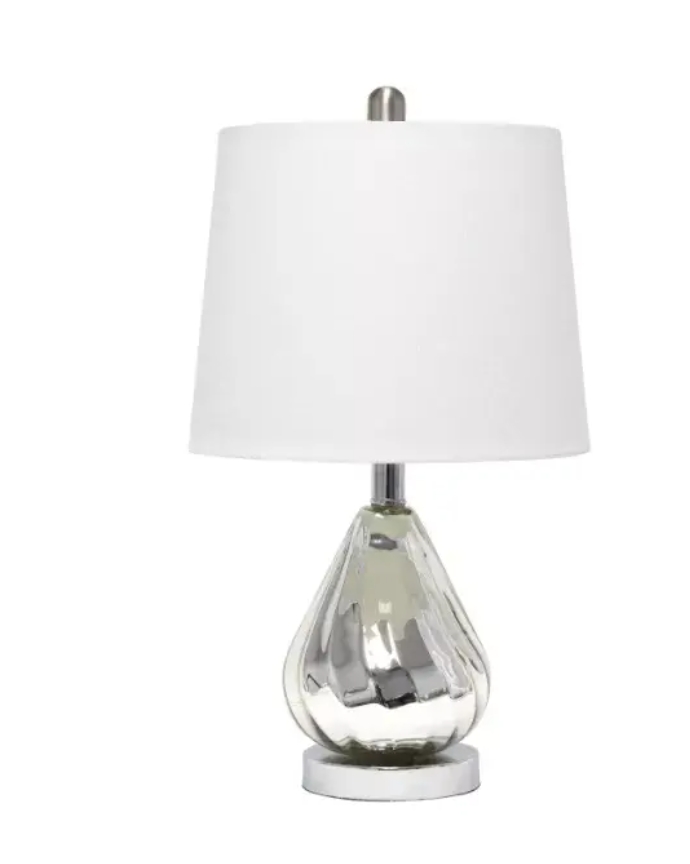 Enhance your room with this stylish chrome glass lamp. The gray fabric shade is the perfect compliment to the base with its' lustrious finish and subtle ripple design. Perfect for your living room, bedroom, office or anywhere you need to add a touch of sparkle!