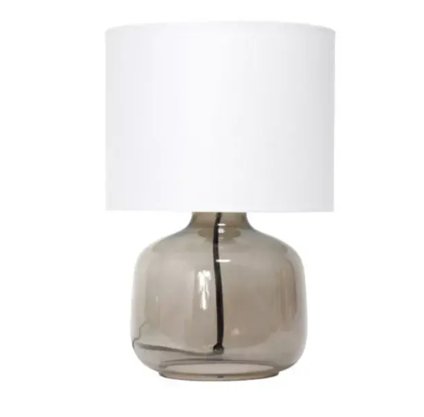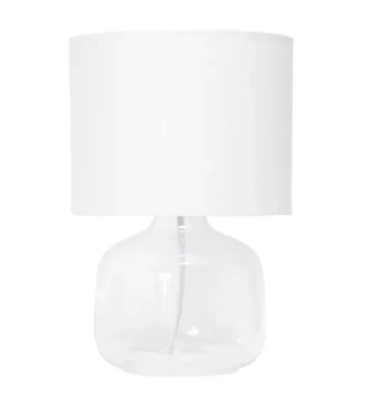 Illuminate your living space with this simple yet stylish glass table lamp. The clear glass jar shaped base and white fabric drum shade is the perfect blend of charm to give your home a contemporary and modern upgrade. Perfect for living rooms, bedrooms, kids and teens, college dorms, apartments, nurseries, or offices.