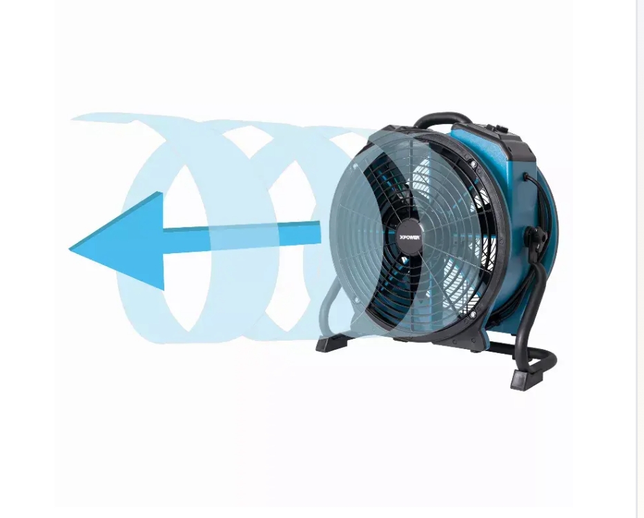 Length: 21.90 Width: 22.50 Height: 9.80 Length: 21.90 Width: 22.50 Height: 9.80 Enjoy superior power and air volume you can't have from regular fan! The FC-420 produces the largest amount of airflow in the line of XPOWER Professional Grade Air Circulator Utility Fans. The high performance induction motor draws a mere 2.8 amps and produces an astounding 3600 CFM. Its unique grill design promotes air movement that provides more effective cooling to improve air quality instantly. The FC-420 includes air fin technology, a 360 degree rack /stand, and a 5-speed switch that is capable of producing consistent directional air movement to quickly ventilate any space. A 3-hour Set-N-Forget timer maximizes productivity and allows you to multitask without backtracking to shutoff equipment. This lightweight, compact unit is stackable and comes standard with an integrated Grab-N-Go Handle to simplify the transporting from storage to ventilating site.