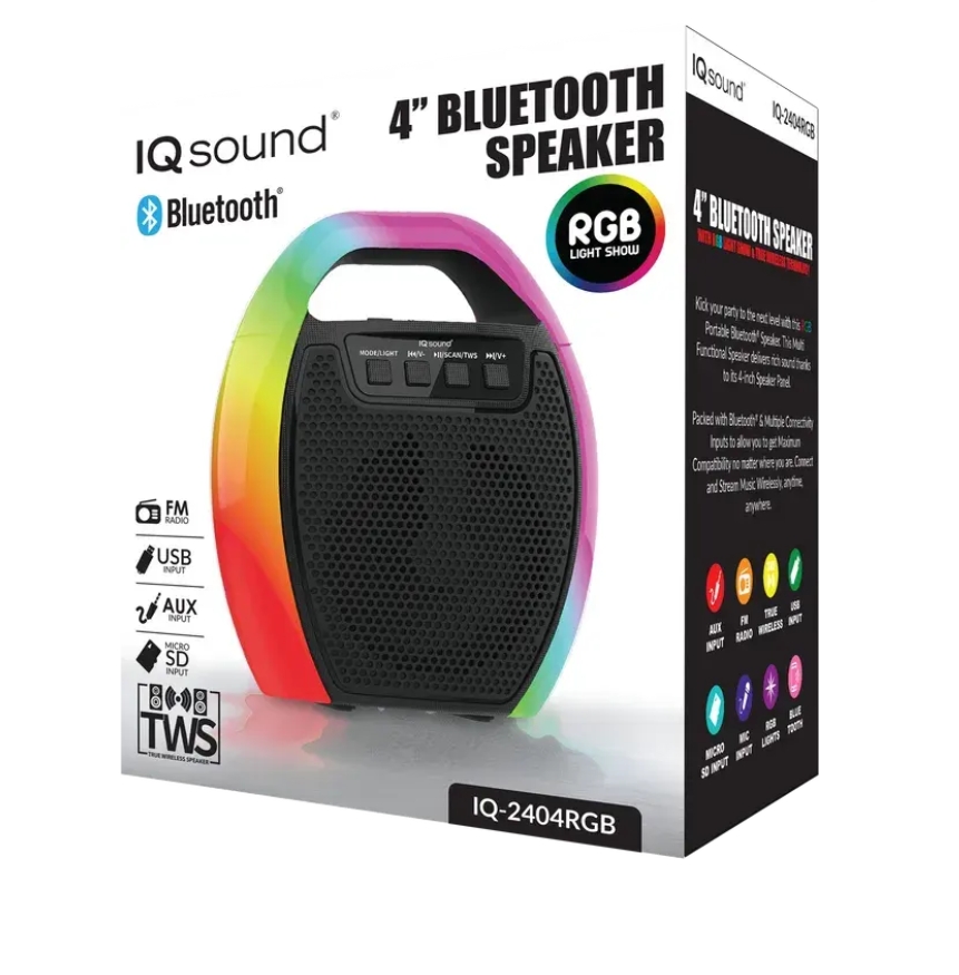 4" Portable Bluetooth Speaker with RGB Handle - IQ-2404RGB