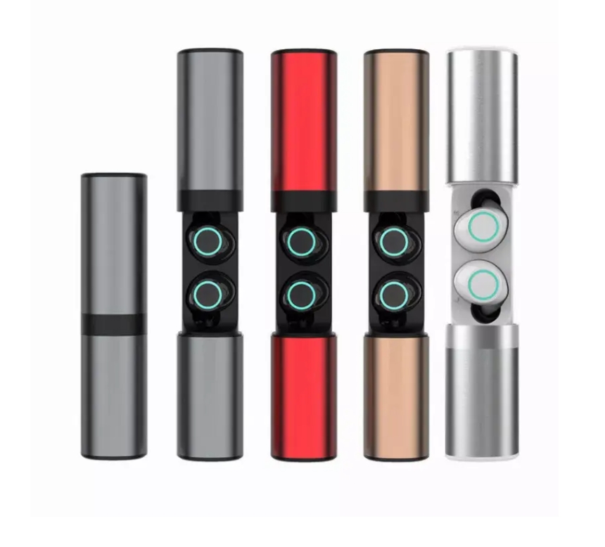 Keep your Smartphone in the queue any time anywhere... These Dual Wireless Headphones with Powerbank are designed with smart technology and a golden rim for style statement! They are also very convenient and easy to carry... Once you have charged up the charger it will hold its power for up to 20 days with the most stable Bluetooth signal! Whenever you are down to the last drop of energy in your phone, just plug it into this portable charger and your phone will come back to life like it just had a triple energy shot. The on/off switch allows you to control how much power you want to use and save some for the later. The charger always shows how much power remains. It can charge most phones up to 50% capacity. Great for quick charge comes in handy till you get to a nearest power outlet.True Twin.. a slick headphone and power bank in one! Earphones are APTX error-free sound with noise cancellation. One-touch connection to phone Bluetooth and is Siri compatible. DETAILS: It comes in multiple colors with a golden rim to select from. It is very handy and can be carried in your pocket or purse. no problem to carry on airplane.Battery capacity is 3000 mAh Get more as stocking stuffers, each sold separately. ...