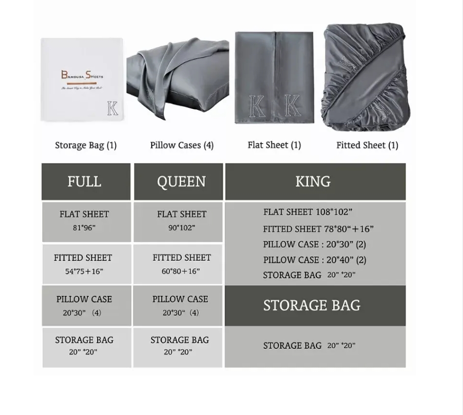 (K=King)-Bamboo Sheets: Luxuriously Soft, Thermal Regulating, Hypoallergenic. Simple Directions On Bottom Corners Of Sheets To Identify SIZE and DIRECTION.