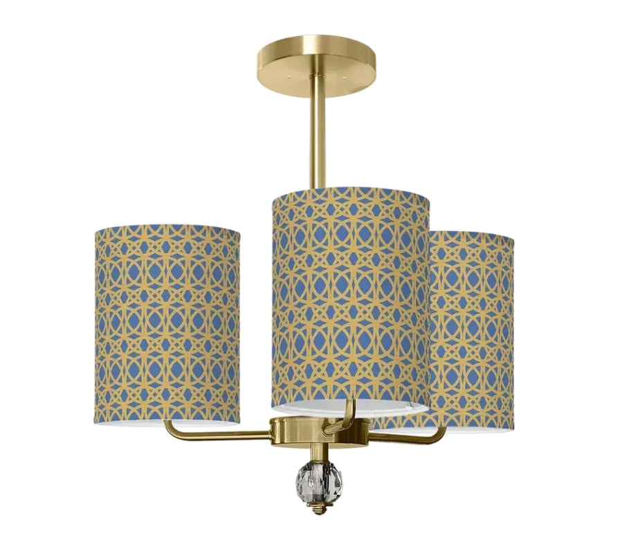 The Newport Chandelier offers an upscale, sophisticated designer lighting style, perfect for smaller spaces that all for elegant lighting, can be hung above a smaller dining table or in pairs as the statement above a large dining table or kitchen island. Dress up a bedroom, office or dressing area. This chandelier features 3-cylinder shades available in one of our designer patterns made of a cotton & linen fabric blend, or solid silk or linen shades combined with your choice of hardware finish in Brass, Aged Bronze, or Brushed Nickel.