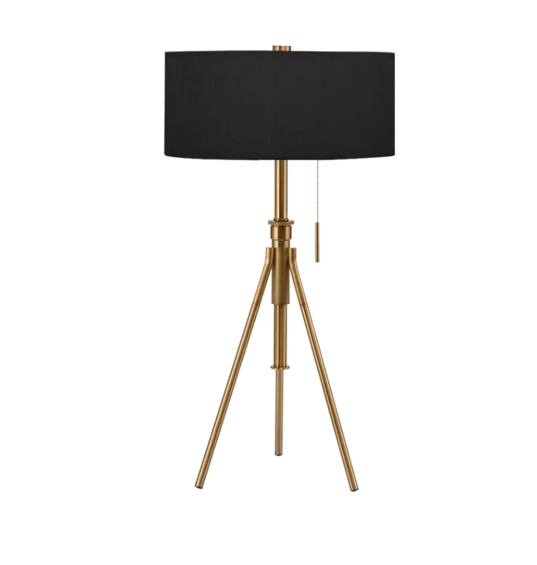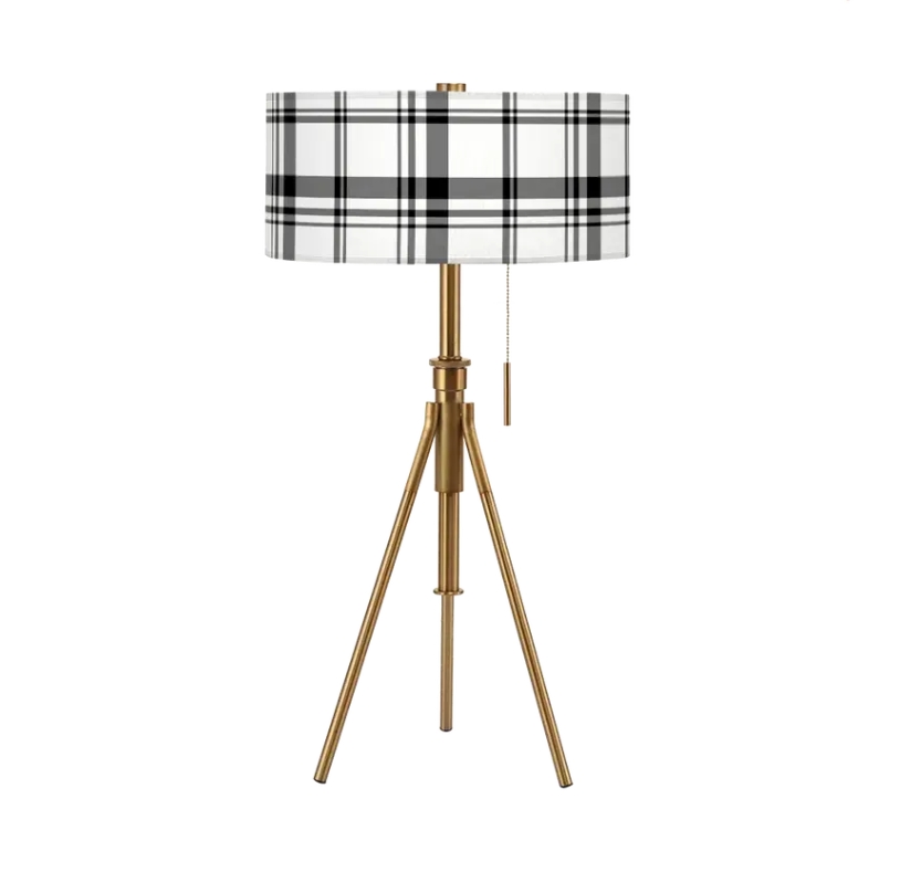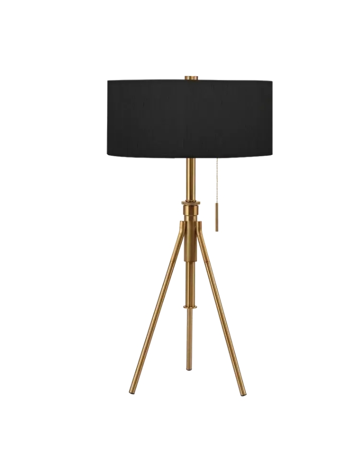 The Tripoli Adjustable Table Lamp is modern and stylish with an adjustable telescoping height mechanism, allowing you to scale your ambient light to an overall height of 32" to 37" tall. The sturdy metal base comes in a brushed brass finish and decorative down pull cord for easy switch of "on and off" light. Update your residential or commercial environment by selecting any of our exclusive designer shade patterns. CUSTOM MADE TO ORDER - MANUFACTURED IN USA