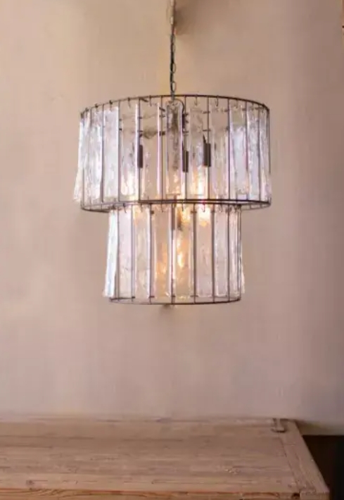 Two Tiered Round Pendant Light With Glass Chimes 20"D X 20"T - CQ7411
