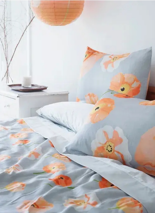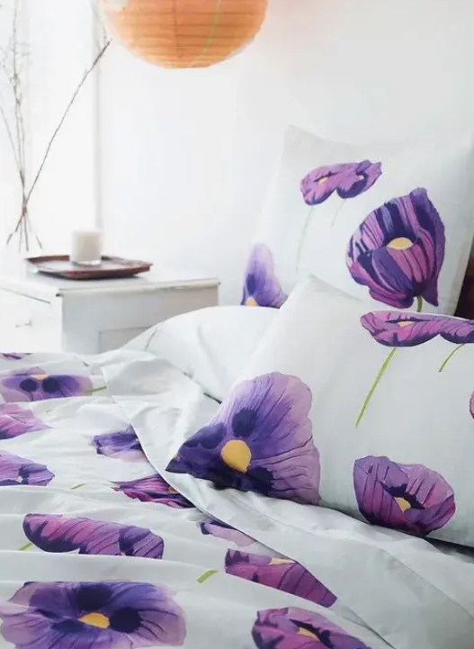 100% natural cotton sateen duvet cover with a discreetly hidden zipper at the foot and comforter ties inside each corner. The design is on both front and back of the cover. Comforter/duvet insert not included. Each duvet cover is printed and sewn in the USA. Each piece is custom made for your order, so please allow up to 2 weeks for delivery.