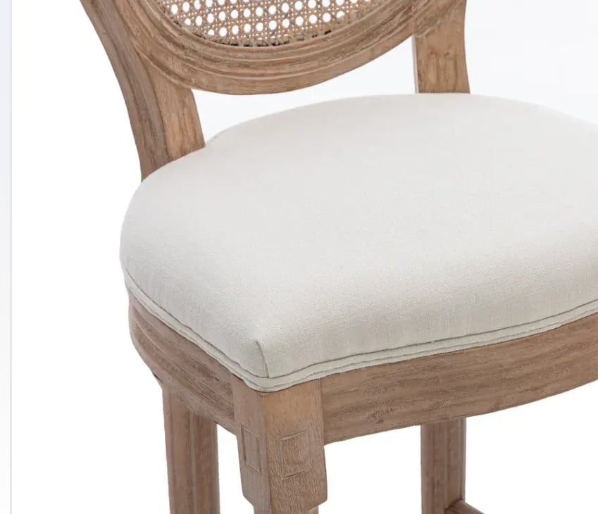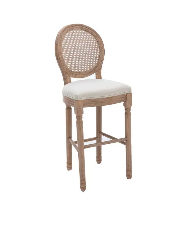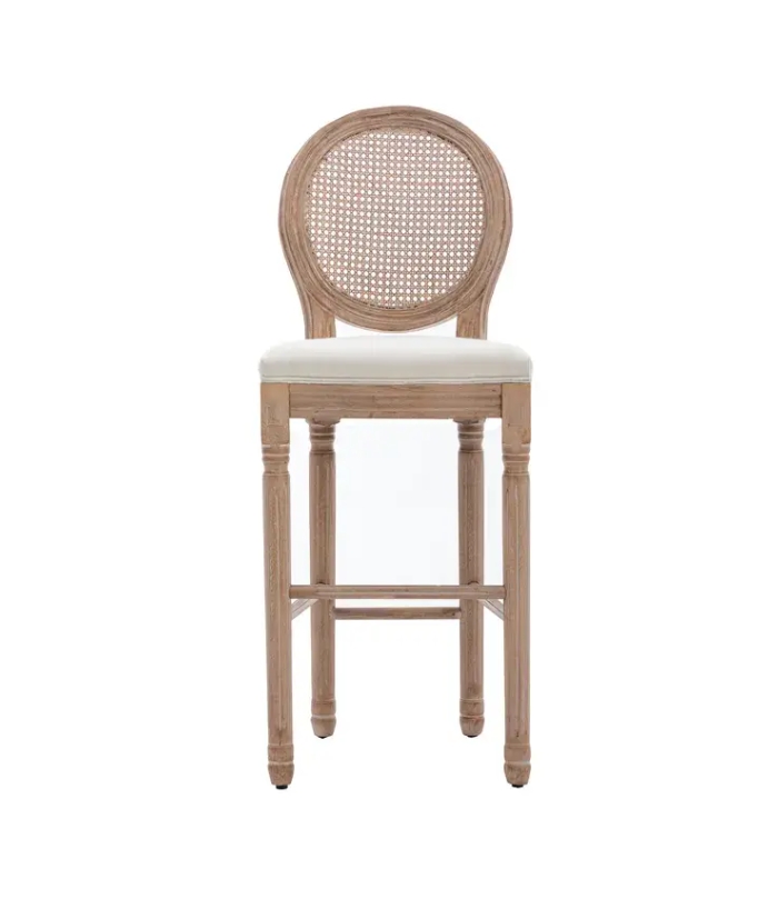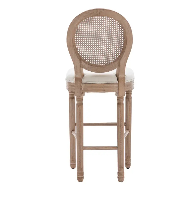 French Country Wooden Barstools Rattan Back With Upholstered Seating , Beige and Natural ,Set of 2About this item