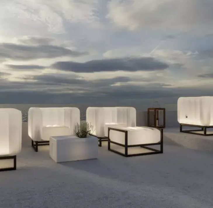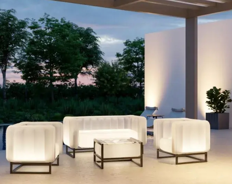 This small and light seat is discreet and elegant, with its PEFC wood structure. This small piece of furniture will easily find its place in your garden or by the pool, and on your terrace, to brighten up your evenings with its trendy and translucent pouf or comfortable foot-rest.