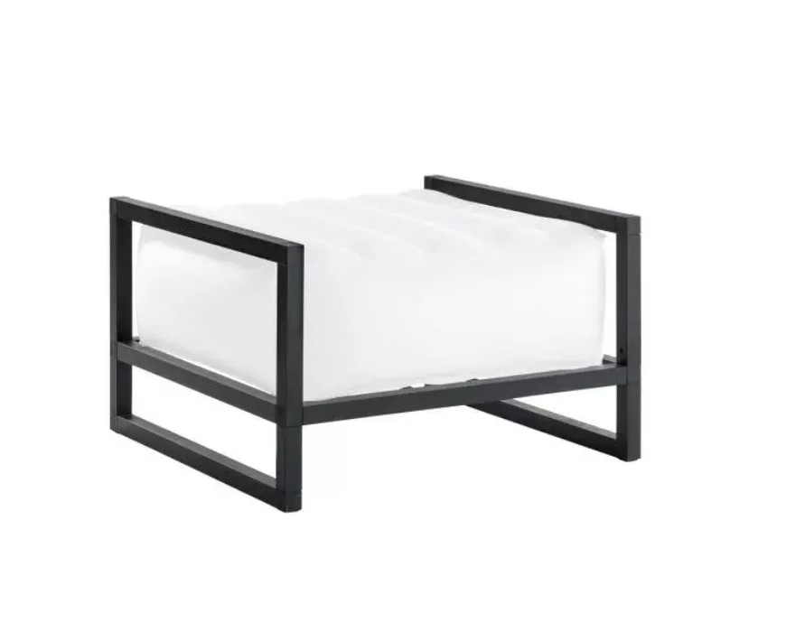Small and elegant luminous seat, with its black aluminium structure. A trendy and translucent pouf or a comfortable footrest, this small piece of furniture will easily find its place in your garden or by the pool, and on your terrace, to light up your evenings.