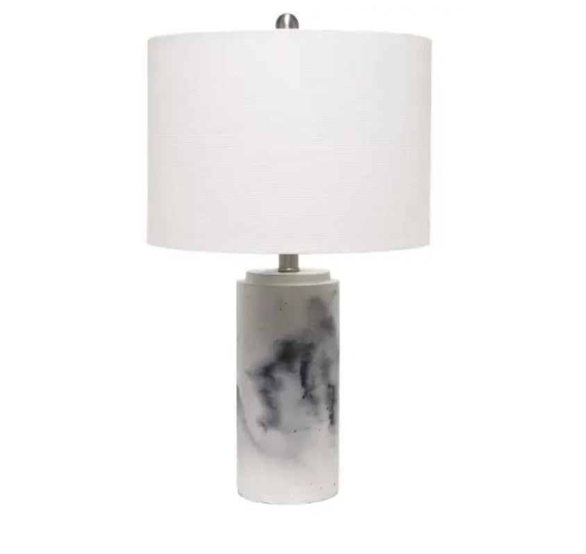 Brighten up any room in your home with this refined table lamp. The base features a beautiful marble-effect finish complimented by a fresh white fabric drum shade. Perfect for your living room, bedroom, office, or anywhere you need to add chic sophistication!