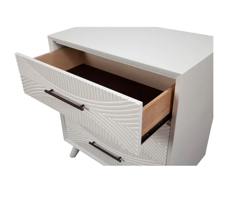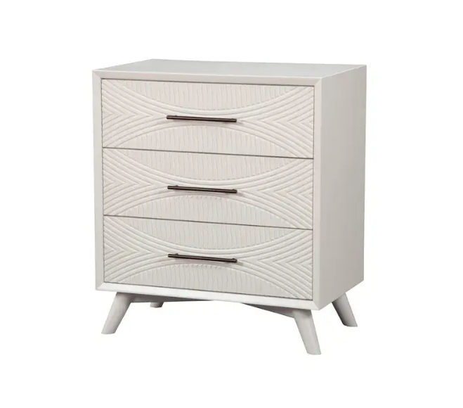 Classic White finish. Quality crafted with Mahogany Wood Solids & Veneer. Fully assembled. French & English Dovetail drawer construction. Felt lined top drawer(s). Ball bearing metal drawer glides. 3 drawers for storage. Alpine Furniture knows that certain things never go out of style. Their furniture products are designed and constructed with classic English and/or French dovetailing that provides a sturdy result and an unbeatable aesthetic. For over 20 years, Alpine has provided its customers with a variety of wood products for the bedroom, dining room, and living room. Each piece is designed to meet the highest-quality standards of design, durability, and dependability. Customer satisfaction is of the utmost importance to Alpine. They have altered their designs over the years based on customer input in order to attain excellence in all areas.
