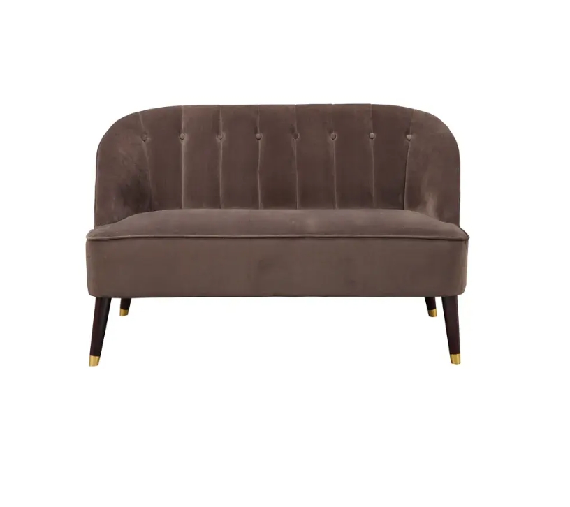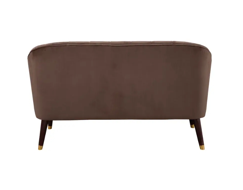 Gorgeous from any angle, the Deco Button Tufted Upholstered Bench adds interest and comfort to any space. The bench frame is crafted from solid Rubberwood . The rich brown polyester fabric is complimented by brown hardwood legs with gold feet. This piece is good for talking, relaxing with a drink, or lounging.
