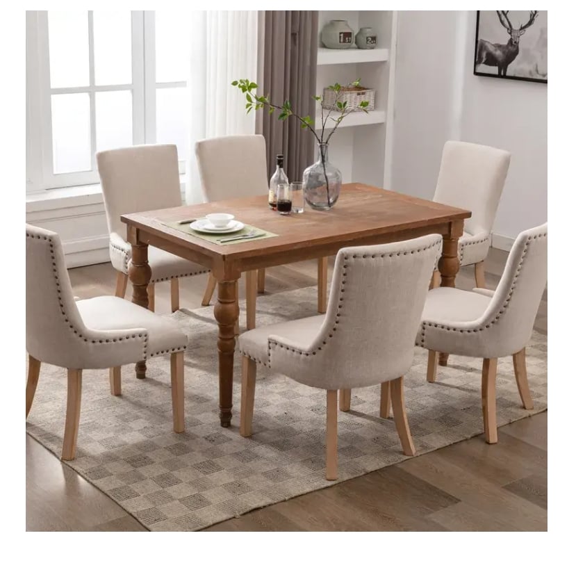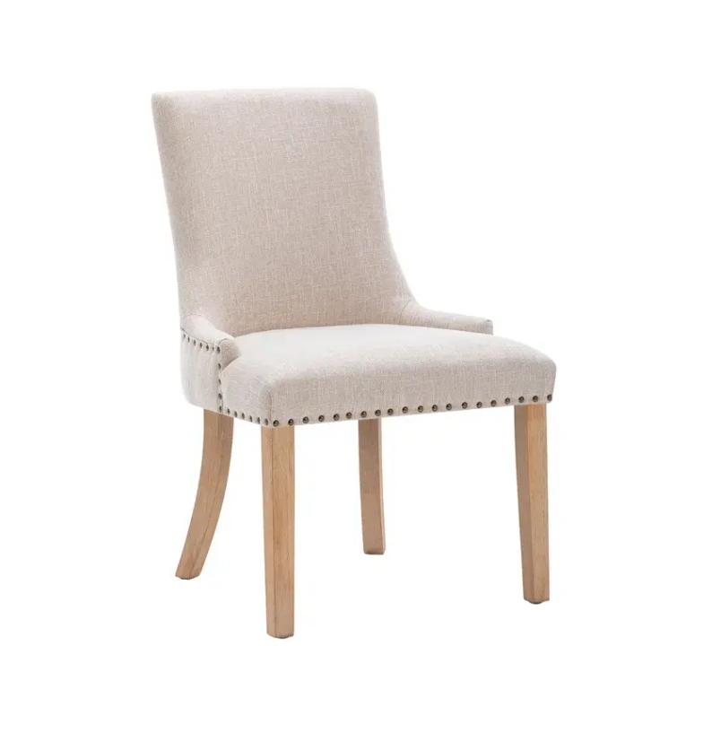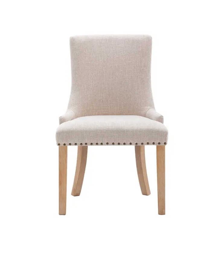 Set of 2 Fabric Dining Chairs Leisure Padded Chairs with Rubber Wood Legs,Nailed Trim, BeigeAbout this item