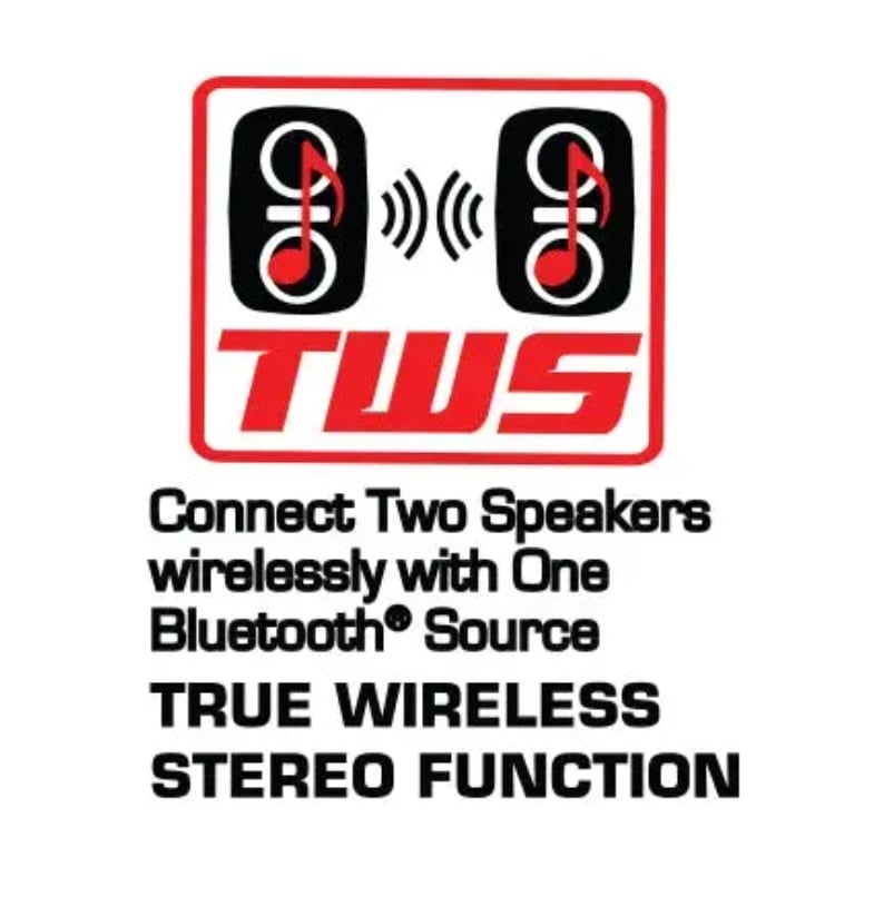 Connect to other Sound Pro NDS-1215 True Wireless Speakers (TWS) allowing you to sync speakers up to 33 feet from each other without any wires