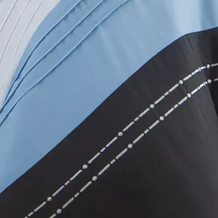This 7 Piece Comforter Set is made from horizontal stripes with multi solid color Blue bands. This set brings a flair of elegance to any room. Set includes 1 comforter, 1 dust ruffle, 2 pillow shams and 3 decorative pillows. Transitional to fit any home's style. Unique and colorful design. 100% Polyester.