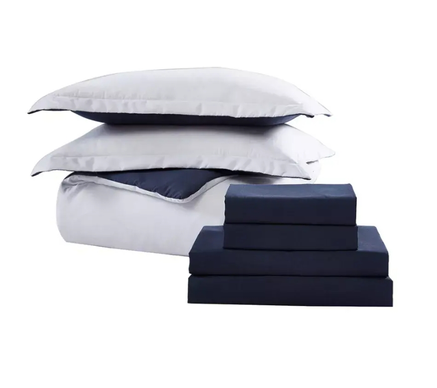 Set Includes: 1 Comforter, 2 Shams, 1 Flat Sheet, 1 Fitted Sheet, 2 Pillow Cases