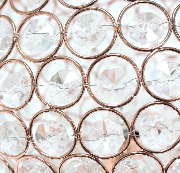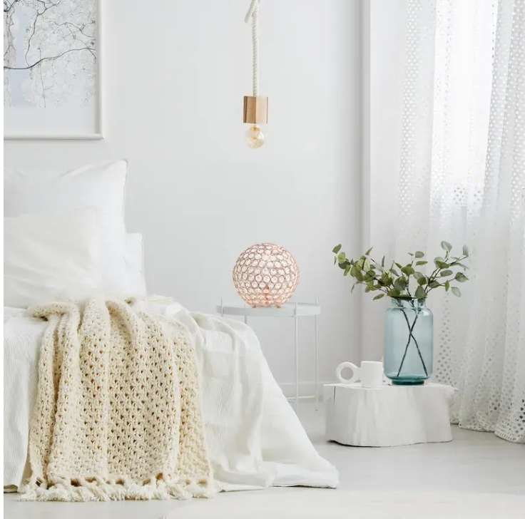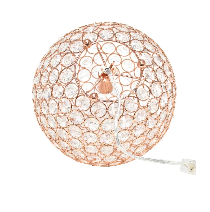 This 10" sphere shaped table lamp is a designer's dream with its gorgeous shimmering crystals surrounding the rounded metal frame, available in a number of finish options ranging from a classic gold, to a modern chrome. With the turn of a gear (rotary) switch on the cord of the lamp, a rich glow shines through the crystals, leaving your space breathtakingly illuminated.