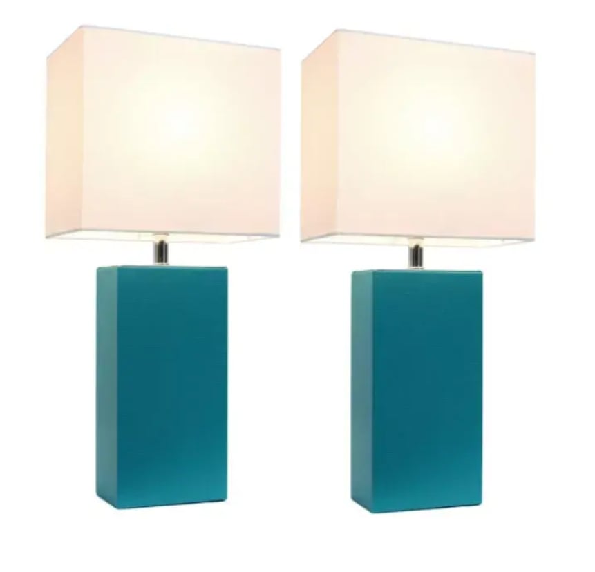 Elegant Designs Modern Leather Table Lamps with White Fabric Shades (Set of 2) - LC2000-TEL-2PK