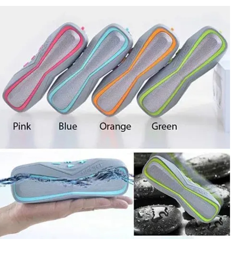 Slinky Waterproof Bluetooth enabled Sports edition speaker.This newest design with its sleek look and handling earns its name in our books as SLINKY. The Waterproof, Shockproof, and Dust Proof speaker has the highest sound quality with auto balance and NFC connectivity. Its rubberized edges and covers on the ports make it shockproof and dust proof. Inside is the latest technology with Dual speaker and Concert Hall feel the sound quality.