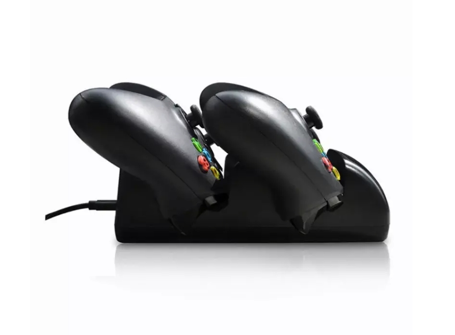 This controller charger station simultaneously stores and charge 2 controllers. This stand model makes the controller sit in a regular position to better connect with the controller. Charge the controller directly on the charging dock, and the rechargeable battery directly. The LED indicator checks the power level of your XBOX and shows Red light when charging and turns Green when it's fully charged. Charge fully within 3 hours that gives 10-15 hours of playtime. No need to worry about any interruption during the game, as it provides continuous power, and no need to worry about overcharging as it won't damage the controller even if you forget to remove the battery in time.Play Time is so much more fun this holiday season and beyond! DETAILS:This controller charger with 2 pcs comes with 1200mAh rechargeable battery packs.The charging station is compatible with Xbox One/S/X/Elite controllers.Charge via USB port