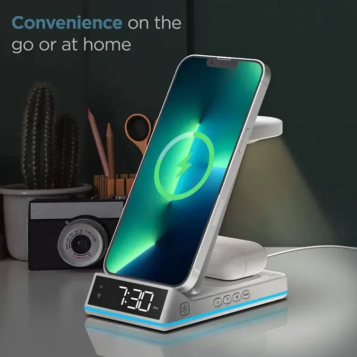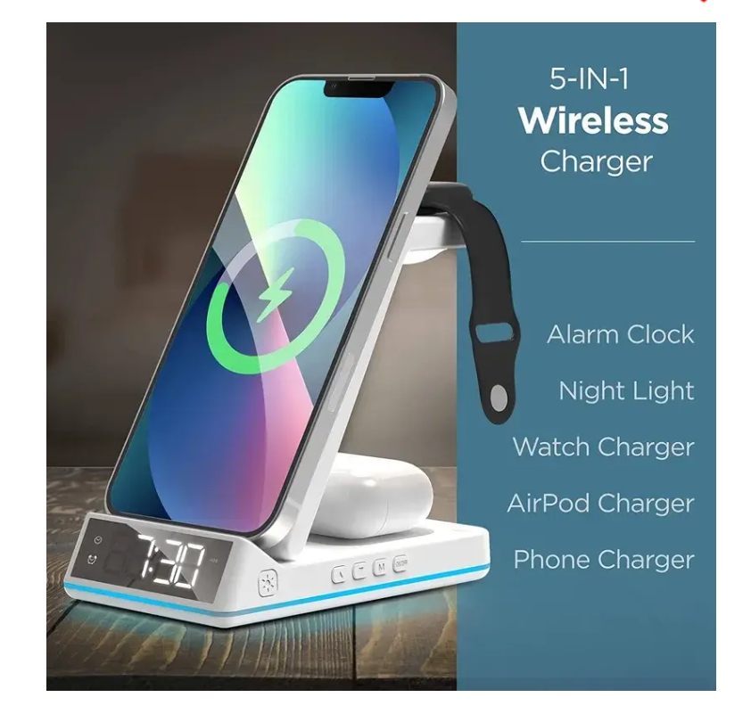 5-In-1 Charging Stand With Alarm Clock & Nightlight - WC501