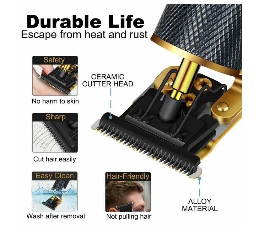Professional Hair Trimmer- Precise and sharp stainless steel T-shaped blade, cut very tight, with 4 kinds of guide combs of 1.5mm, 2mm, 3mm, 4mm, suitable for trimming inch heads, patterns, etc.
